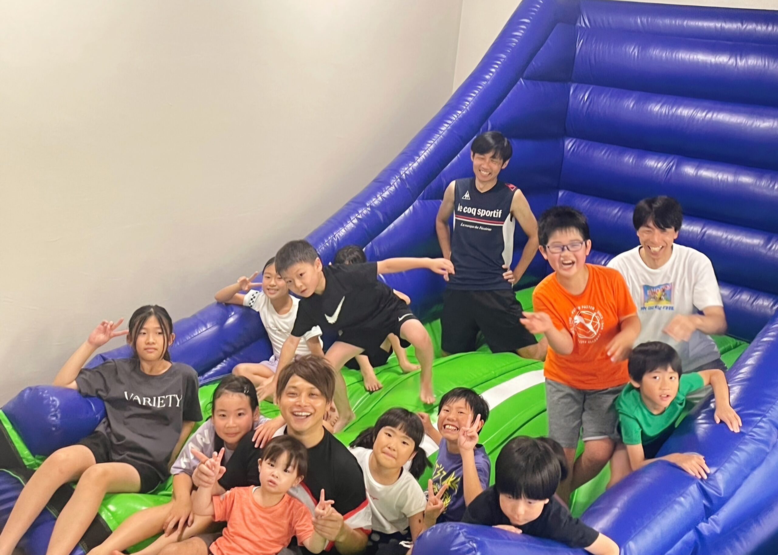 ホッピングマットなので失敗しても痛くない環境です。まさに遊びながら身体能力が伸びる環境です。